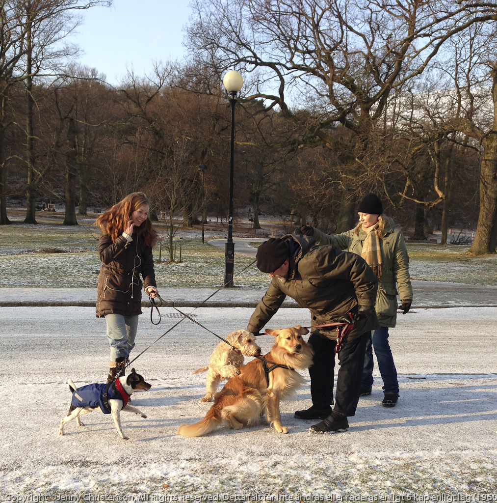 Hundpromenad i Slottsskogen jan 2013 - sällskap av Bobby och Bertil och Iphonen